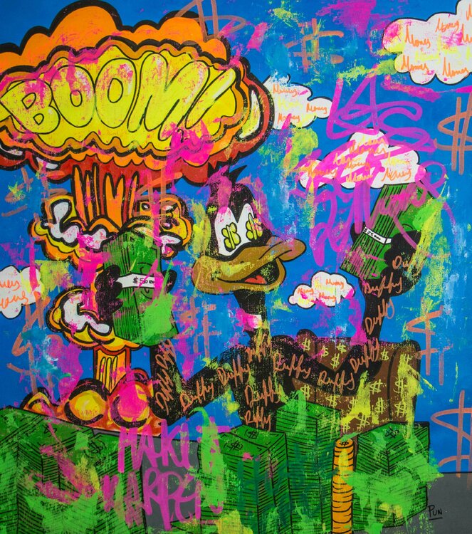 No Matter What Lets Keep Making Money Ft Duffy Duck By Carlos Pun 2021 Painting Acrylic Graffiti On Canvas Singulart